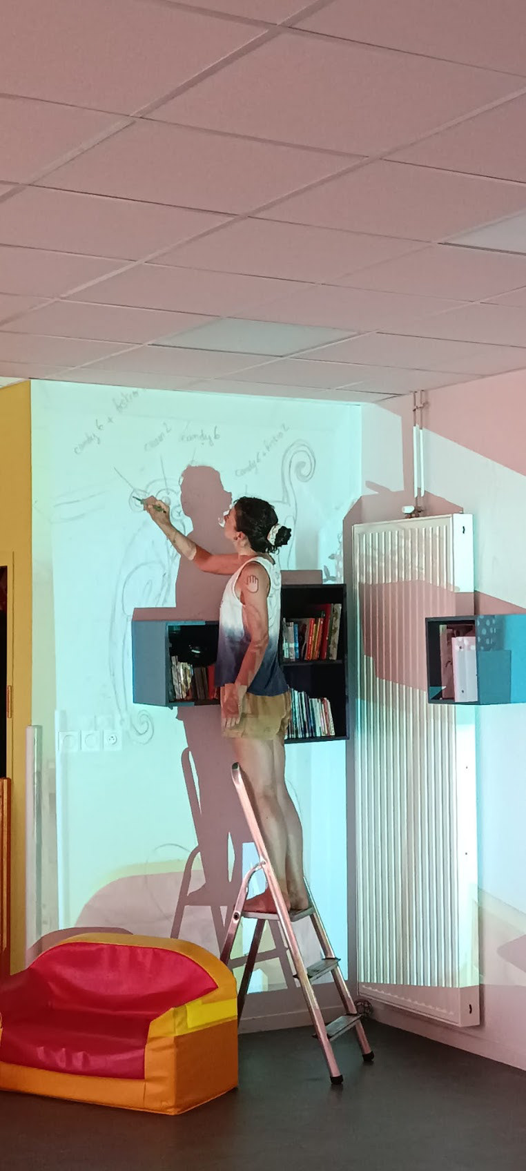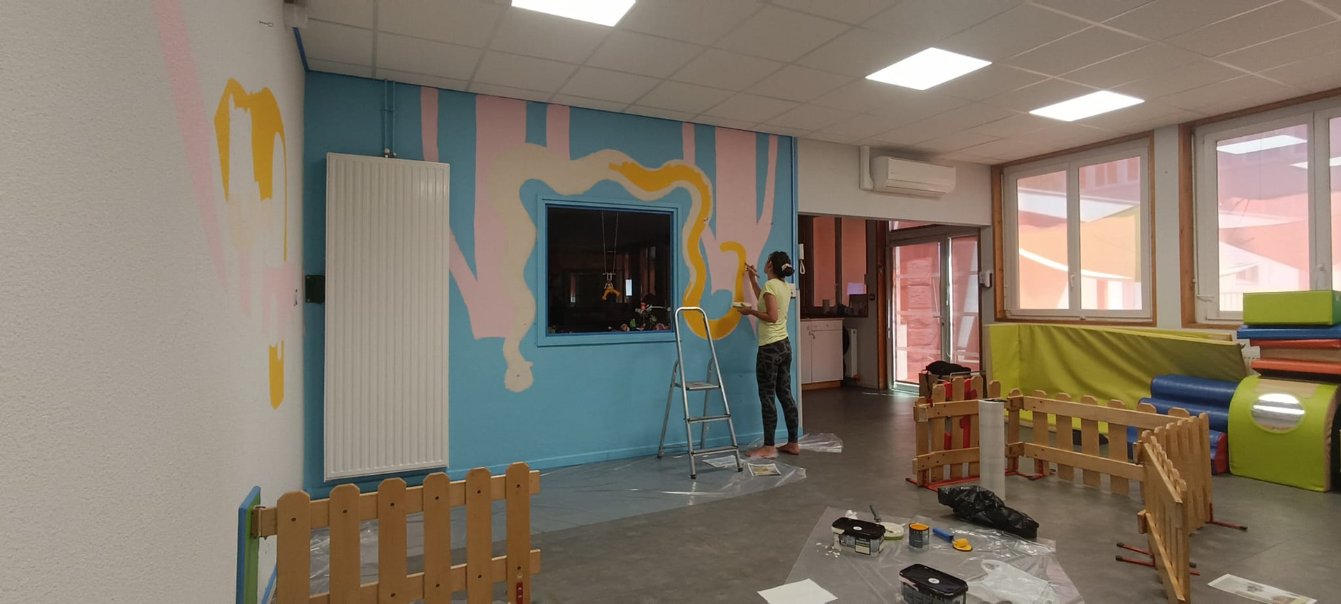 Je suis fière que cette fresque participe à l’embellissement de l’espace, mais aussi à l’émotion quotidienne des enfants et de celles et ceux qui y évoluent. Merci à Marielle pour sa confiance et son aide à la réalisation de ce beau projet.