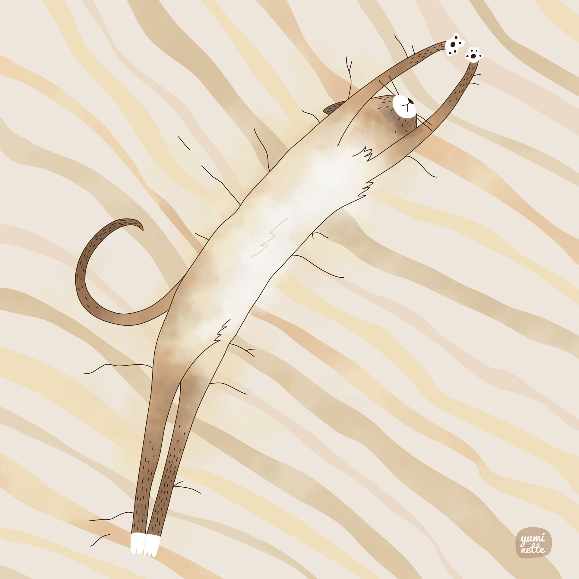 Personnal project directly inspired by my cat. She has such weirds positions when stretching, and also a real tendancy to look fancy and smart (well, it's just a look.) - so i have to draw it.