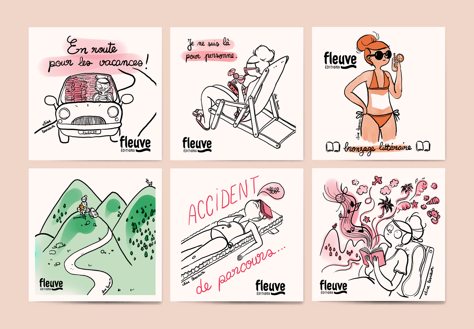 Illustrations pour les réseaux sociaux de Fleuve Editions